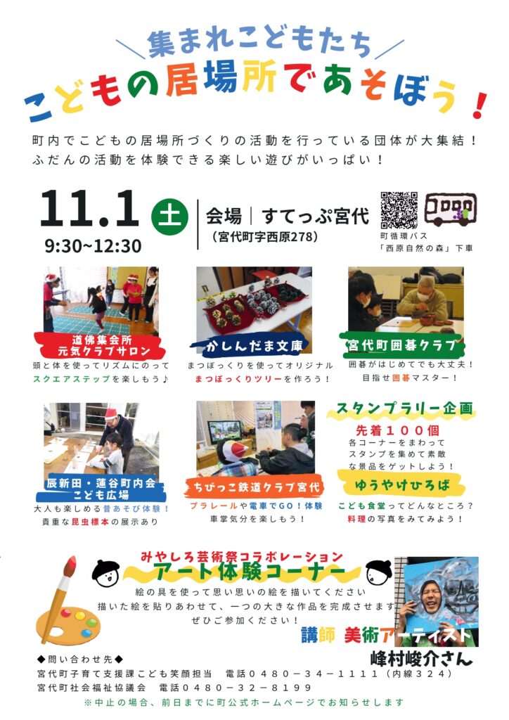 芸術の秋ということで今年は「アート」をテーマに、町内のこどもの居場所づくり活動団体による、遊びやアートづくりを体験できるイベントを開催します。